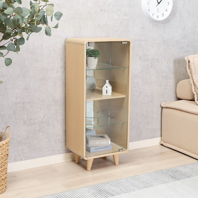 コレクションシェルフクレール ハイが新たにラインアップしました!このシェルフは、丸みを帯びたフォルムがおしゃれで、さまざまなコレクションを美しく引き立てるデザインが特徴です。 カラー ナチュラルオーク/ホワイトウォッシュ 商品サイズ(mm) 全体:幅360 × 奥行265 × 高さ890 耐荷重(ガラス棚板):3kg 耐荷重(棚板):4kg 耐荷重(底板):5kg 商品重量(kg) 12.5 梱包サイズ 外箱1:幅885 × 奥行620 × 高さ110mm / 15.5kg コレクションシェルフクレール ハイは、リビングや寝室など多様なシーンでの使用が可能です。シンプルでありながら、優雅なフォルムにより、空間に特別なアクセントを加え、あなたの大切なアイテムをより引き立てます。 ◆演出:このコレクションシェルフは、あなたの日々の暮らしに優雅さを添えるアイテムです。お気に入りのコレクションを並べて、心を豊かにする空間を演出してみてはいかがでしょうか。ぜひ、お部屋に取り入れて素敵なコレクションを楽しんでください! 希望小売価格(税抜き)¥22,500