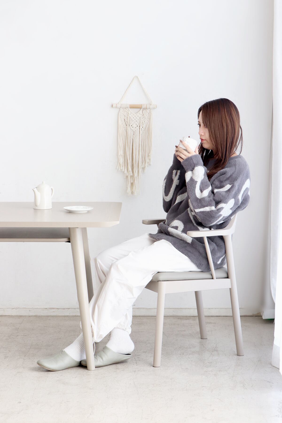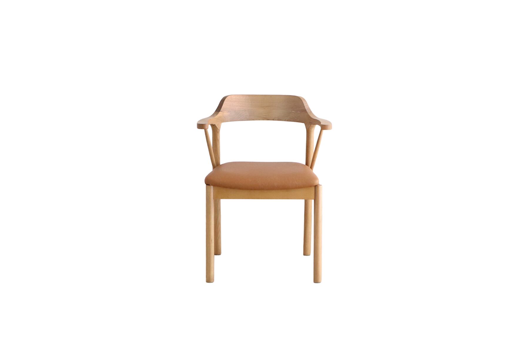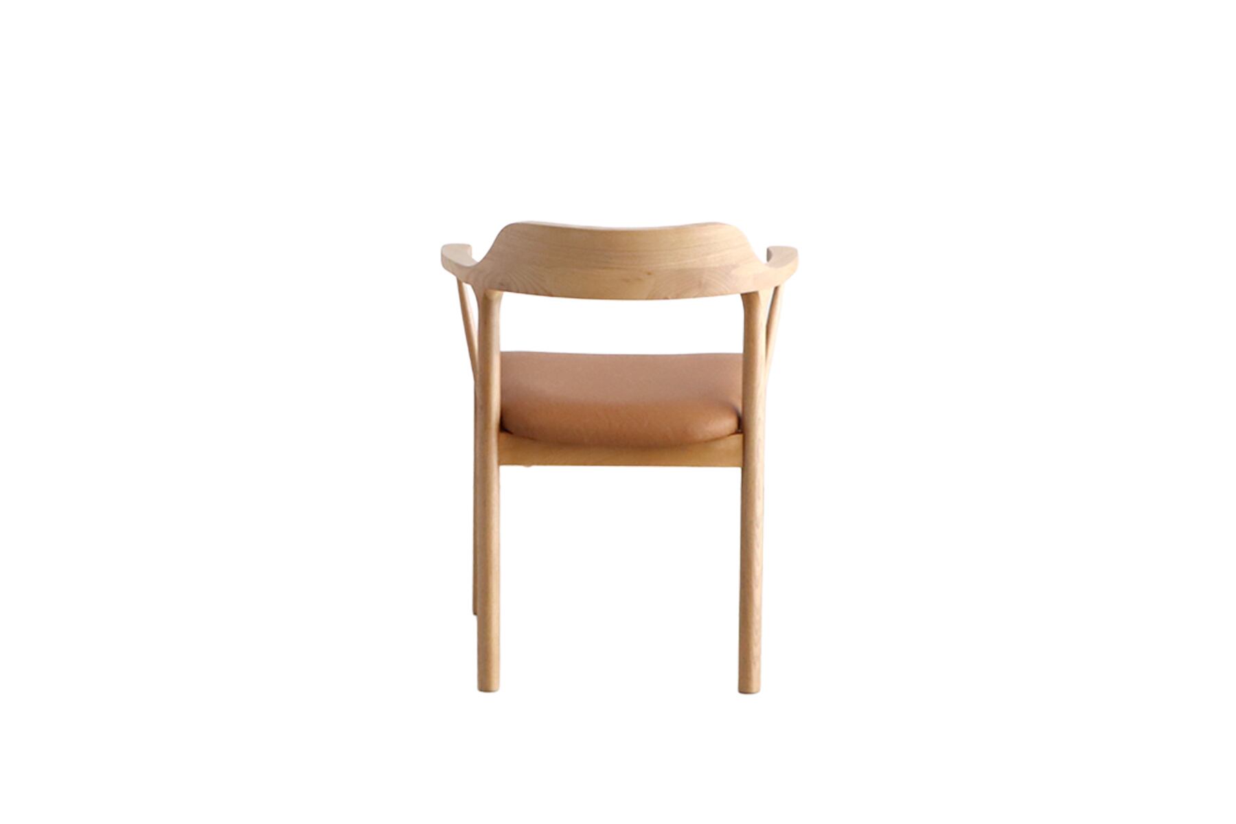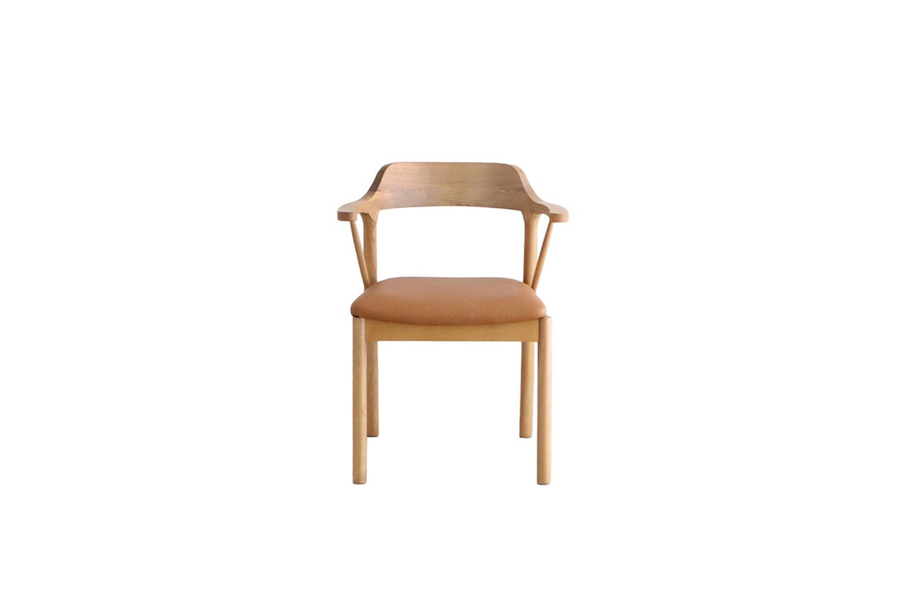 背中や腰に沿ってカーブしたラインと、肘を自然に預けられる絶妙な高さが、座る人の身体をそっと包み込みます。