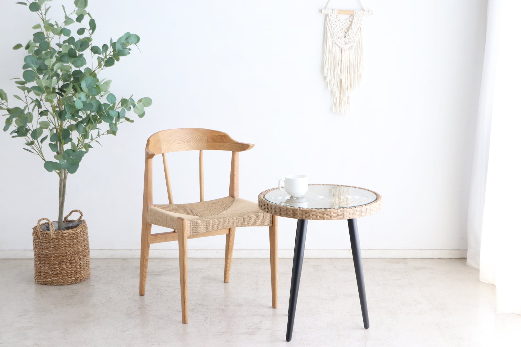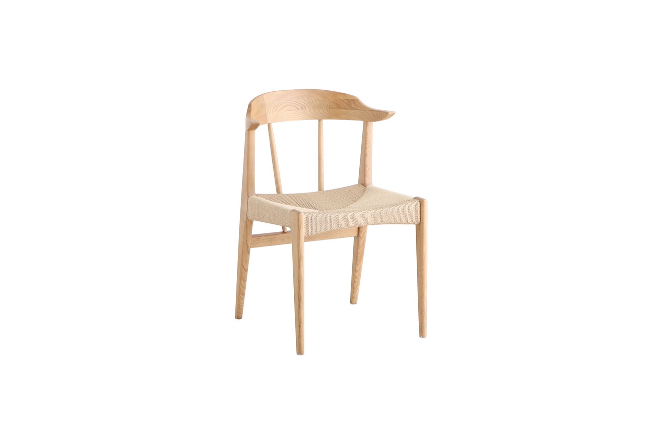 質感のあるアッシュ無垢材と、座面にペーパーコードを使ったおしゃれで軽やかなデザインチェア。