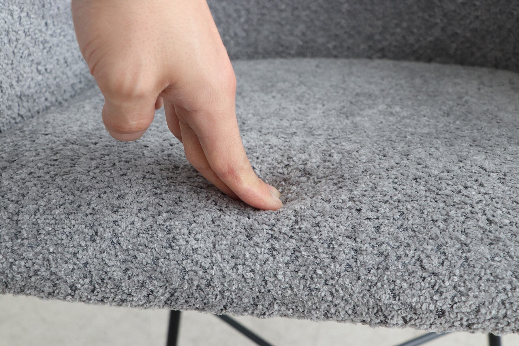 ファッション業界で注目を浴びているブークレー生地。極厚のファブリッククッションで、包み込まれるような座り心地のチェアをインテリアに取り入れることで上級コーデに変身します。包み込まれるようなフォルムは、まるでソファに座っているかのようなくつろぎを味わえます。ブークレー素材は、凹凸がある独特のテクスチャーを持ち、見た目にも美しく、さらには肌触りも非常に快適です。座面には、クッション性の高いものを使用しており、長時間座っても疲れにくく快適に過ごすことができます。また、シンプルでモダンなデザインは、どんなインテリアにもマッチします。ブークレー素材を使ったチェアで、リラックスしたひとときを過ごしてみてはいかがでしょうか。