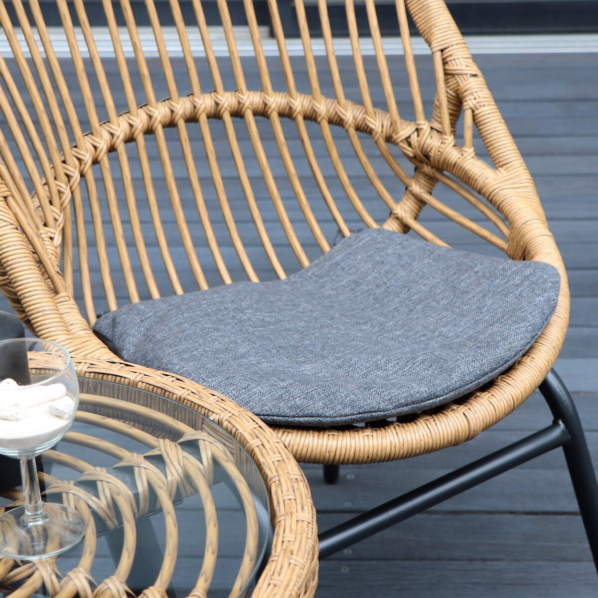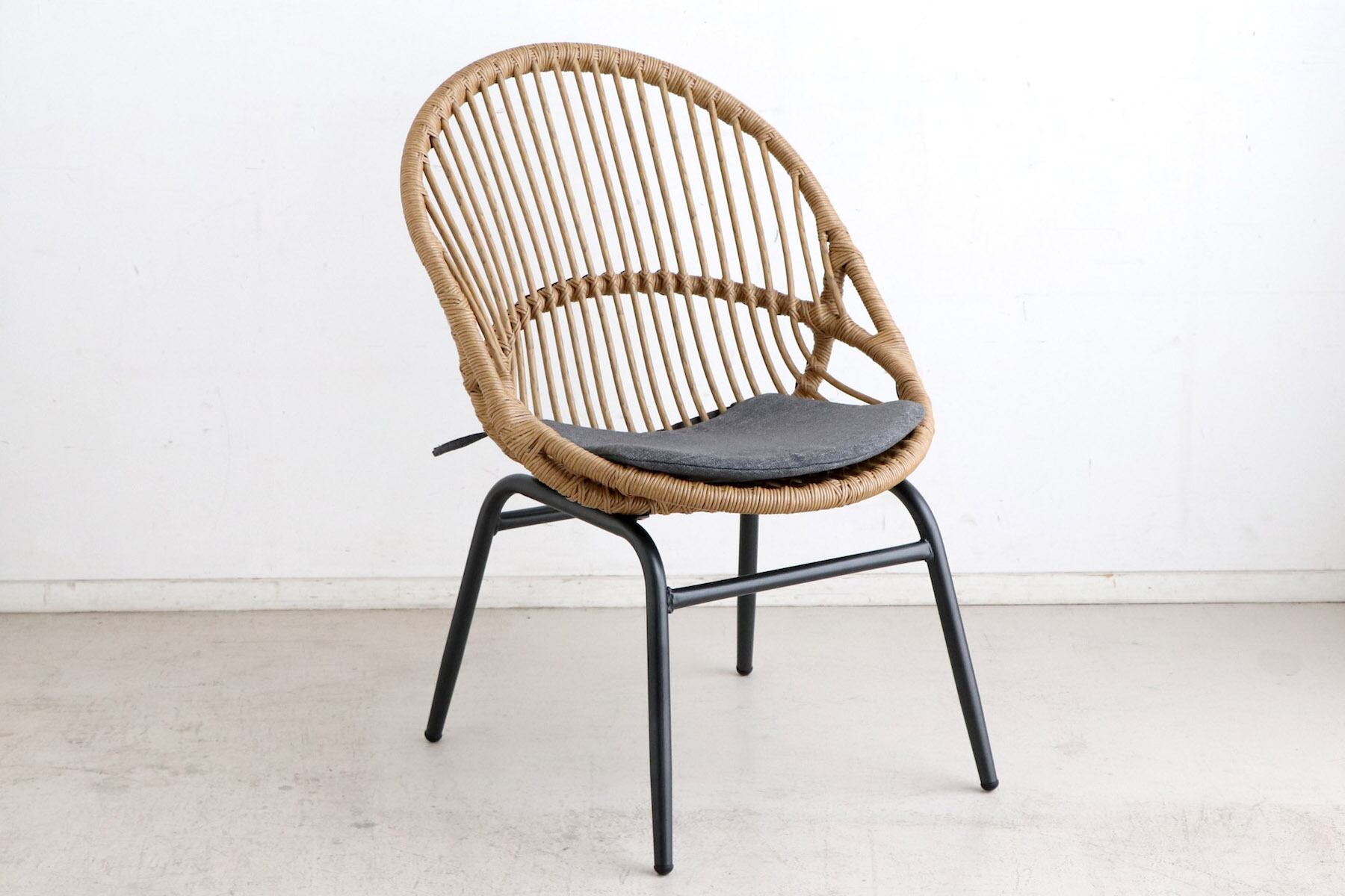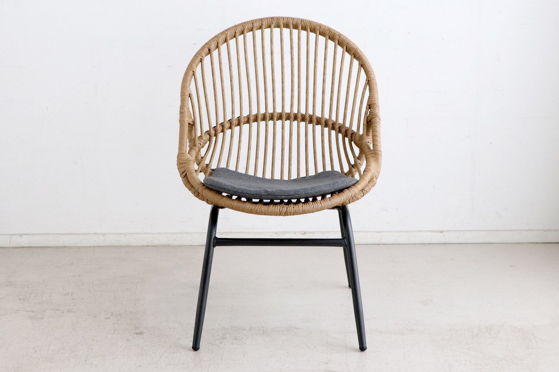 背もたれ:ポリエチレン(ラタン調)/ 張地:ポリプロピレン / 中身:通水性ウレタン / 脚部:スチール(粉体塗装)
