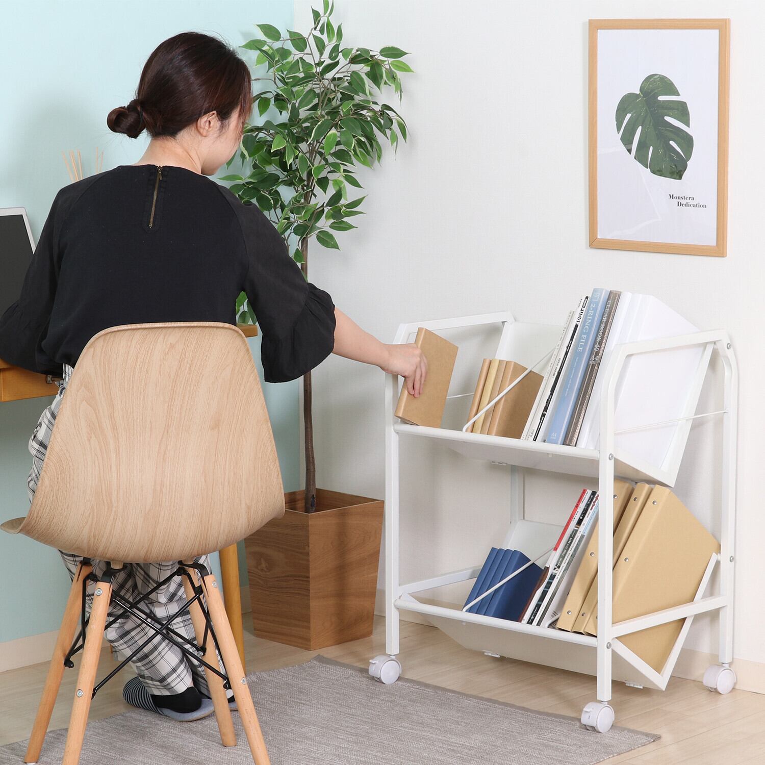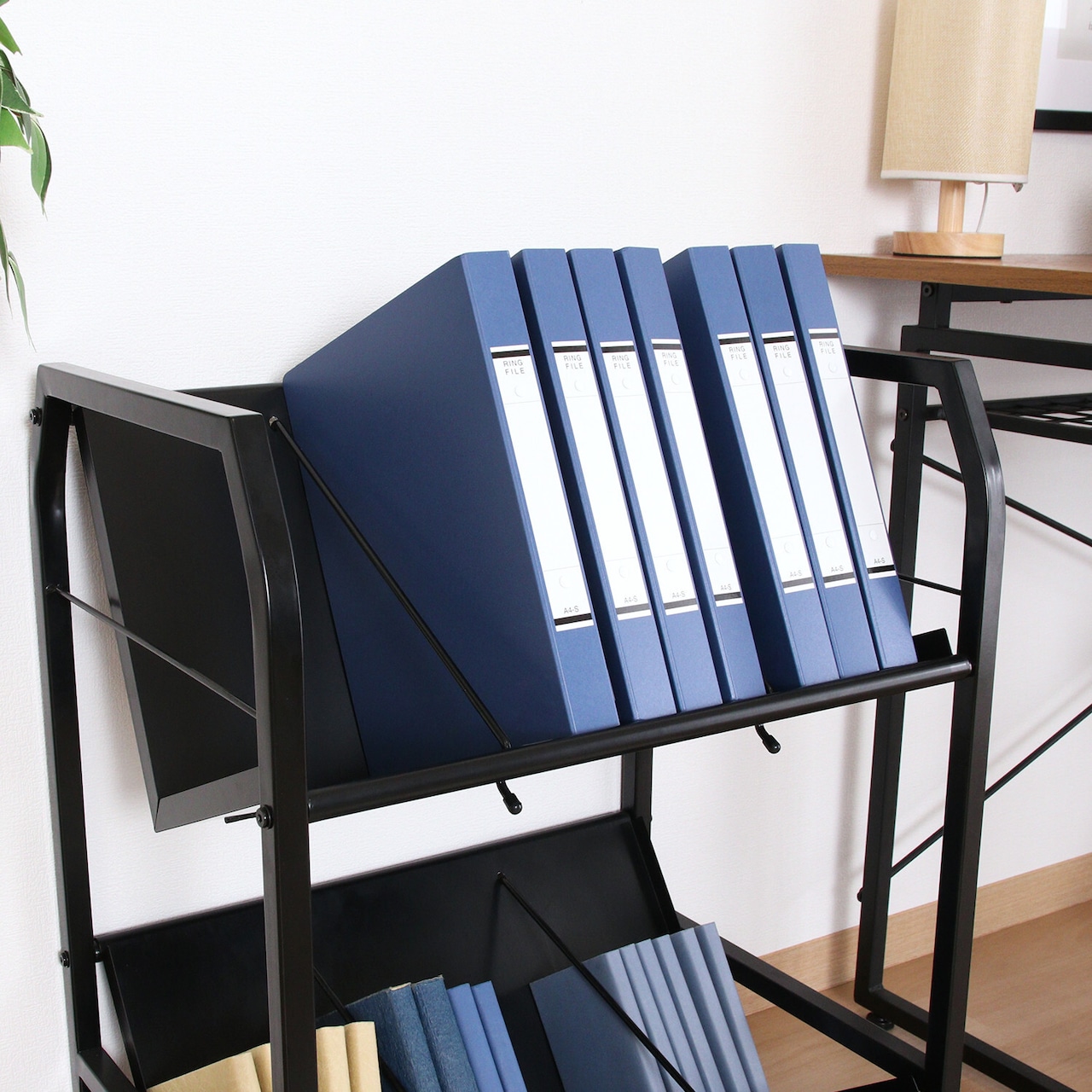 このファイルワゴン2段は、書類や雑誌などを整理整頓しやすく、機能的でありながらスマートな印象を与えます。2段のスペースはたっぷりと収納できるため、デスク周りやリビングなどの整理に大変便利です。
