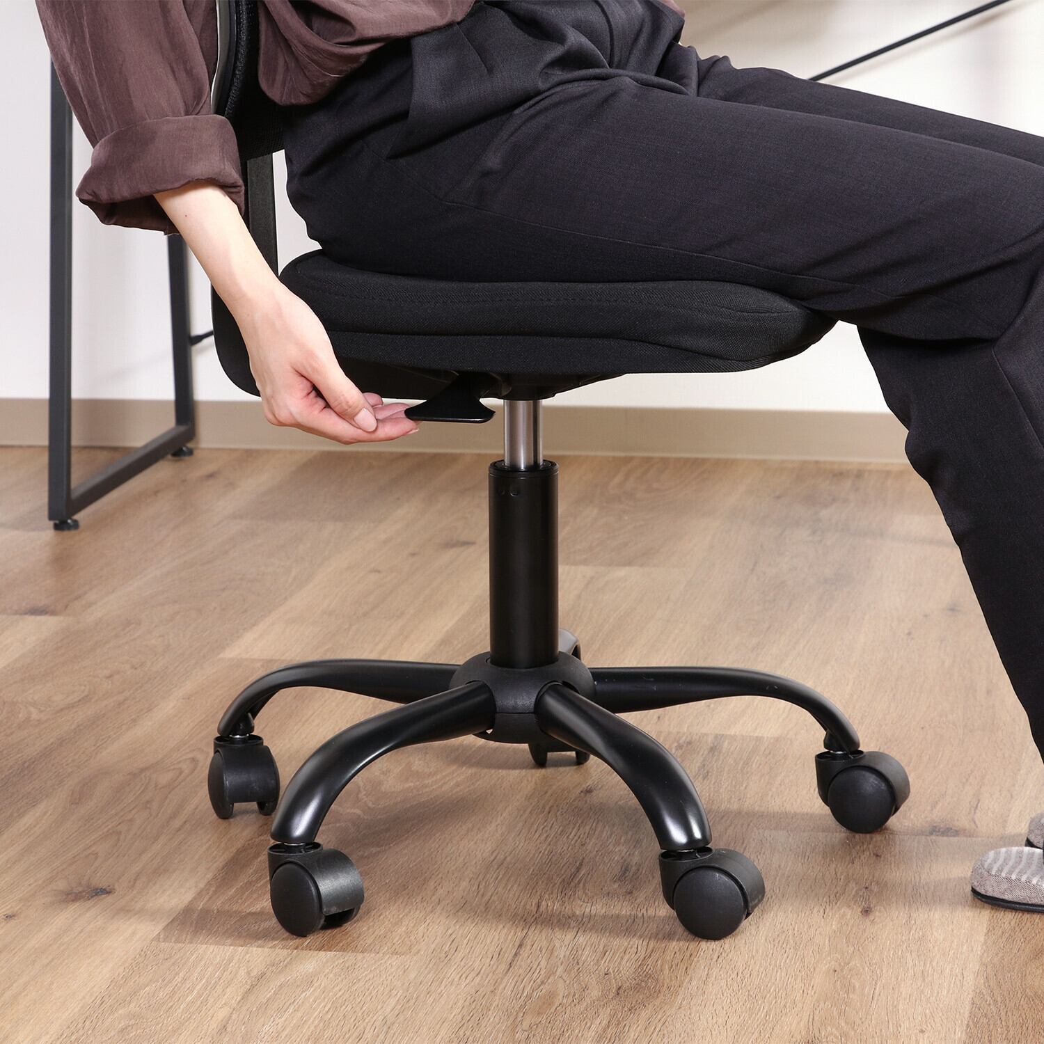 ◆ポイント:座面は程よいクッション性があり、長時間の使用にも安心です。調整可能な座面高により、多様な体型にフィットし、快適な作業をサポートします。