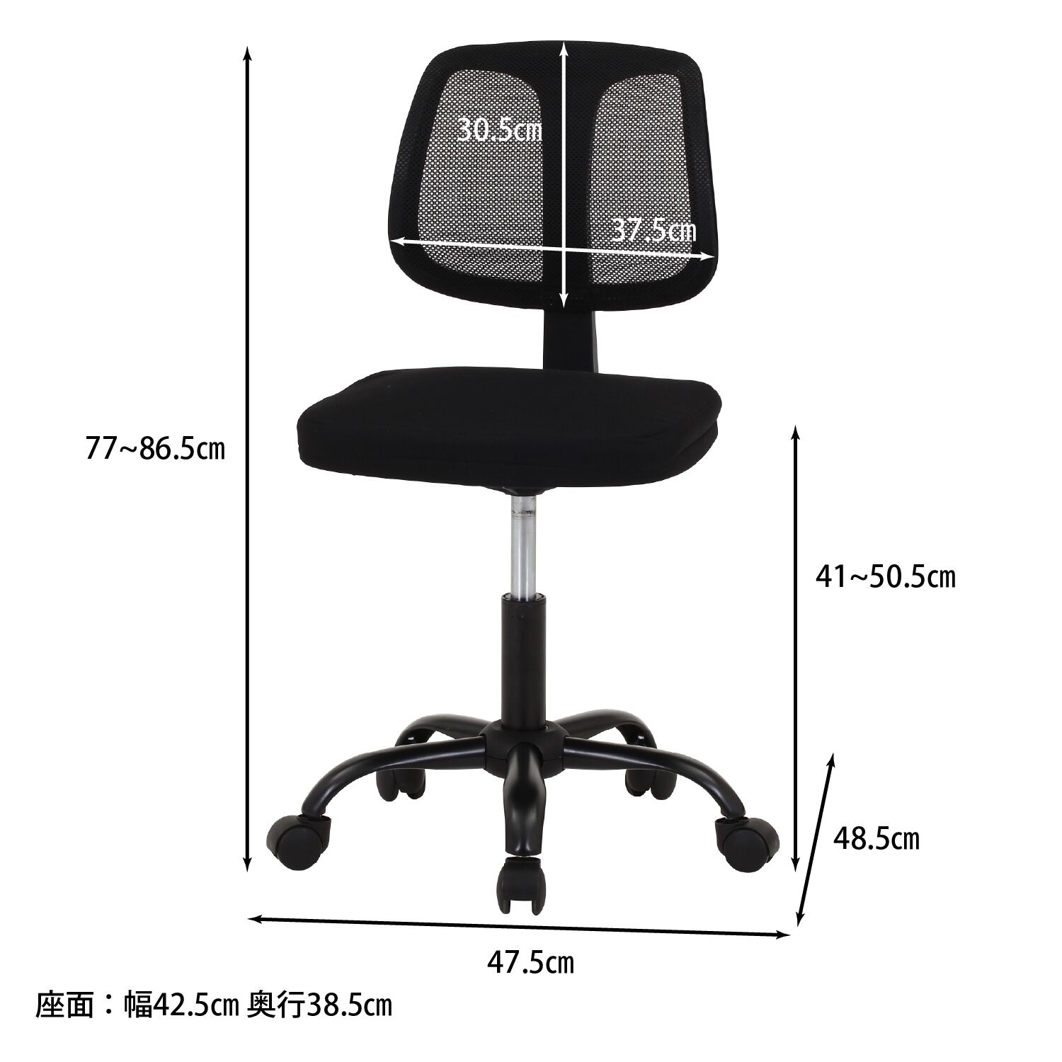 商品サイズ(mm) 全体:幅475 × 奥行485 × 高さ770~865