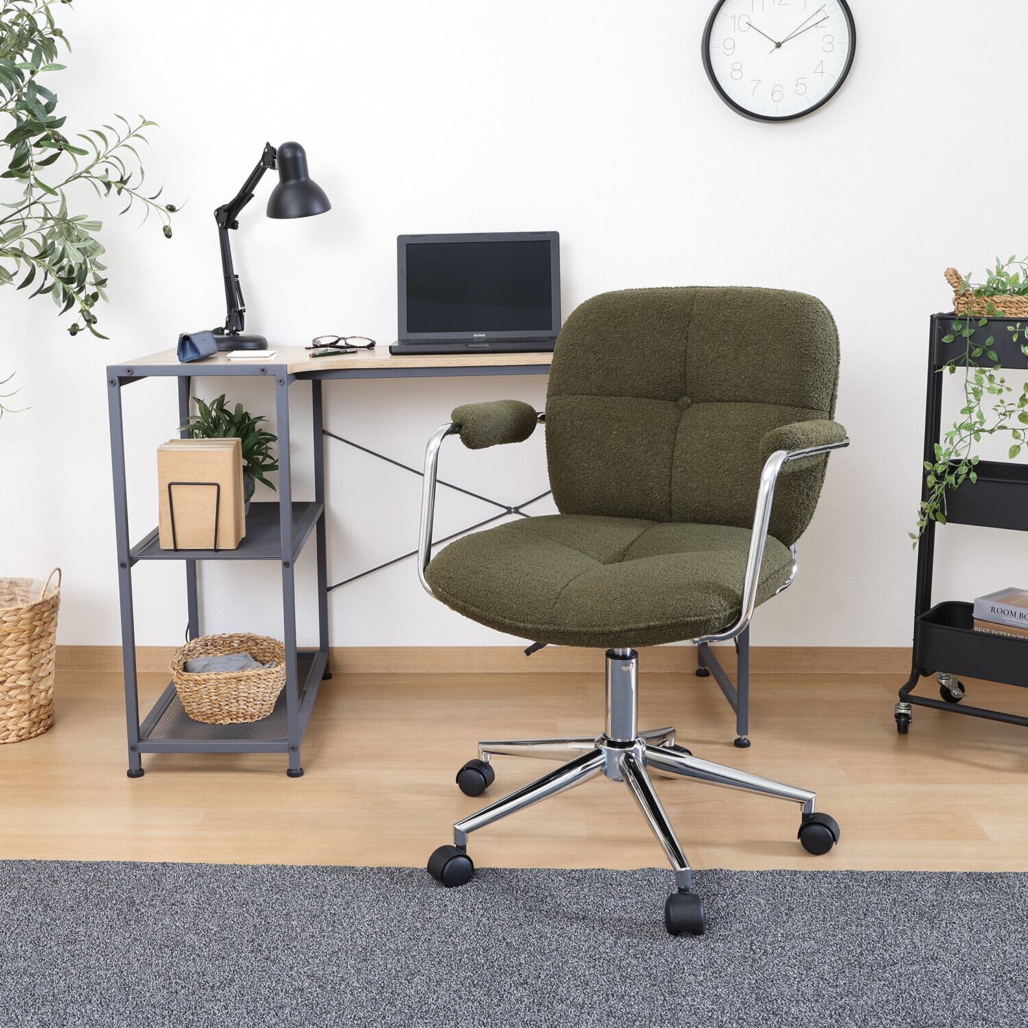 ◆演出:オフィスチェア ルルは、柔らかなカラーリングとデザインが特徴です。シンプルながらもおしゃれな雰囲気で、さまざまなインテリアスタイルに調和します。テレワークや在宅勤務に理想的です。