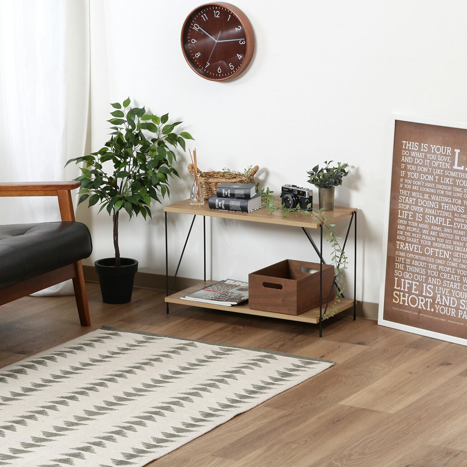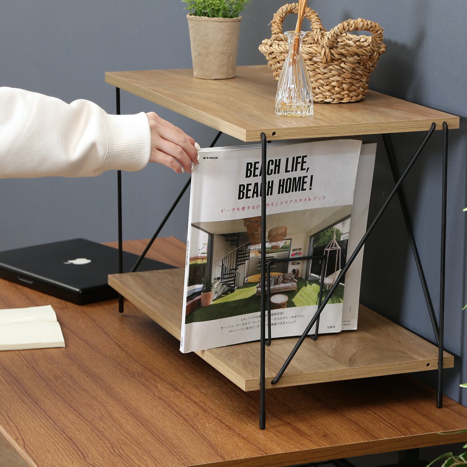 EZBOワイヤーラック2段 60幅は、効率的な収納を実現する実用的なデザインが魅力です。キッチンやリビング、オフィスなど様々なシーンで活躍し、雑貨や本、植物などを美しくディスプレイ可能です。