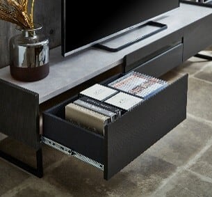 ステラ 150テレビボードは、テレビや機器の収納スペースが広く、リビングや寝室などさまざまな空間で活躍します。インテリアとしても引き立つスタイリッシュなデザインが、あなたのお部屋に高級感をもたらします。