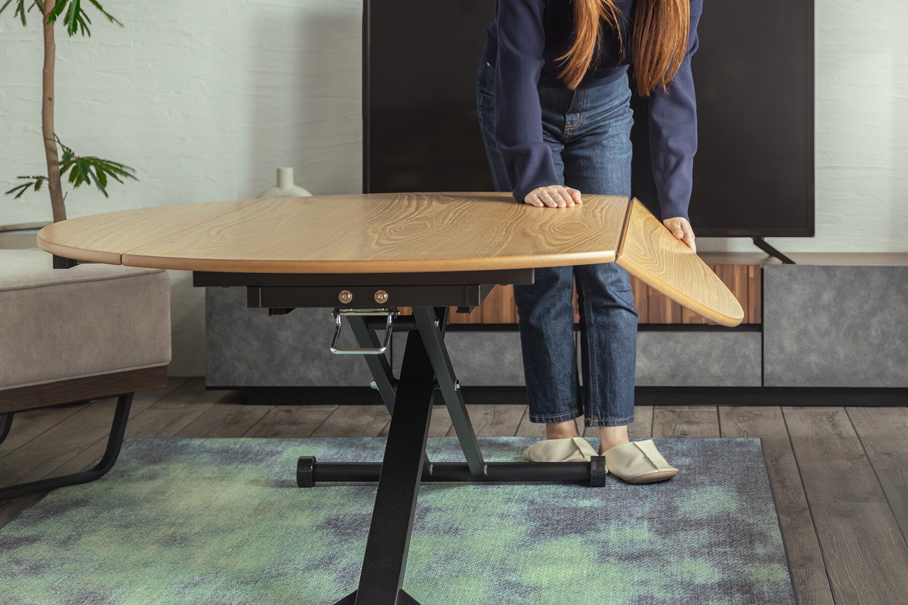 便利さとスタイリッシュさを兼ね備えたアイルス昇降テーブルが新たにラインアップしました!折りたたみ式の天板は、両側を開くことで簡単に調整できるデザインが特徴です。シンプルな操作で昇降ができ、日常の使い勝手を大きく向上させます。また、どんなインテリアにも自然と溶け込み、快適な空間を演出してくれます。