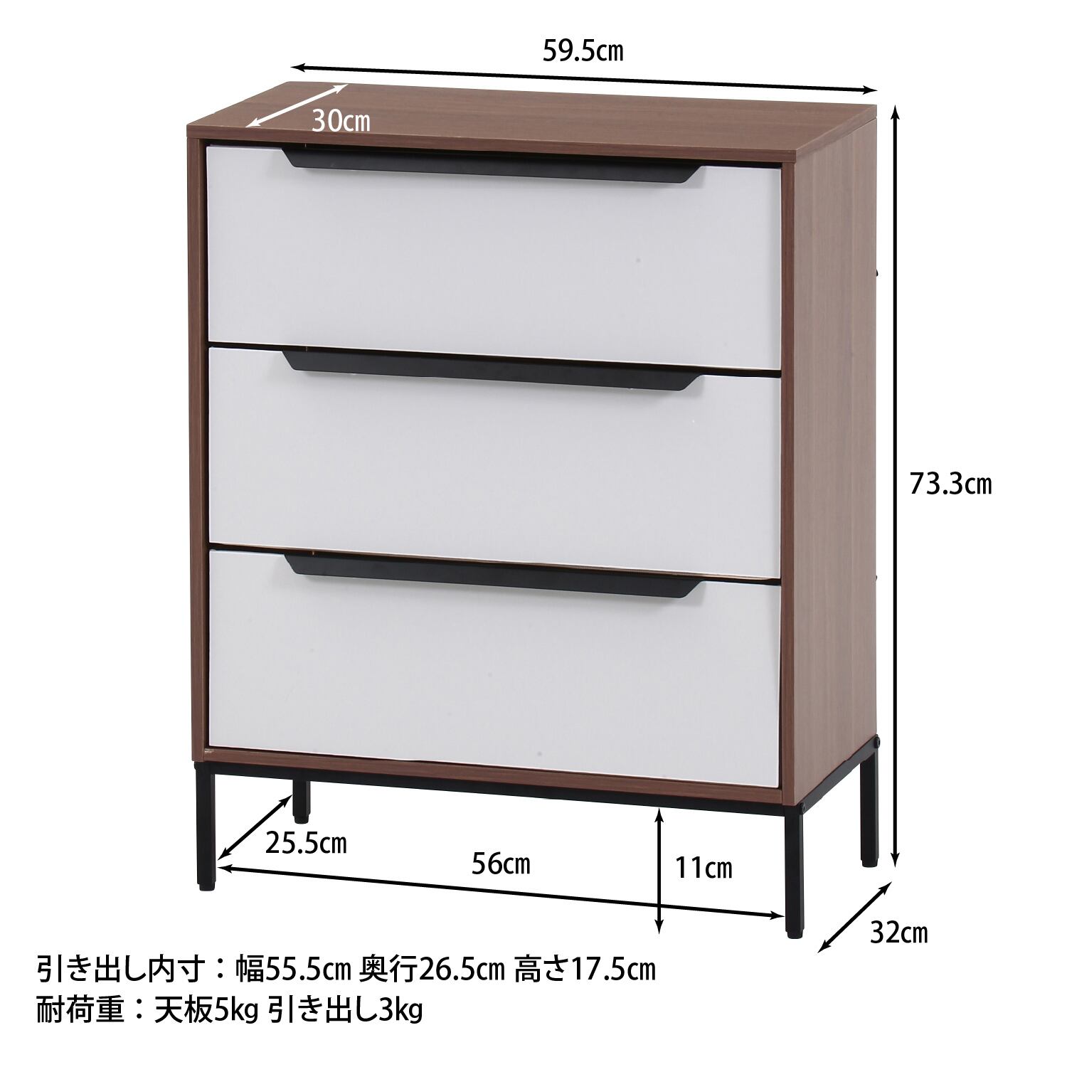 耐荷重(引出):3kg