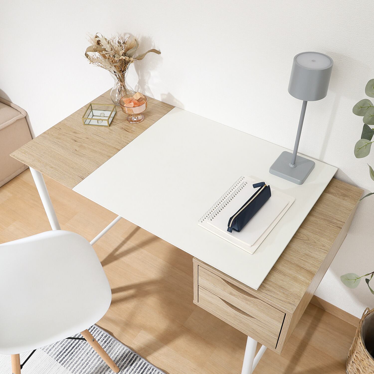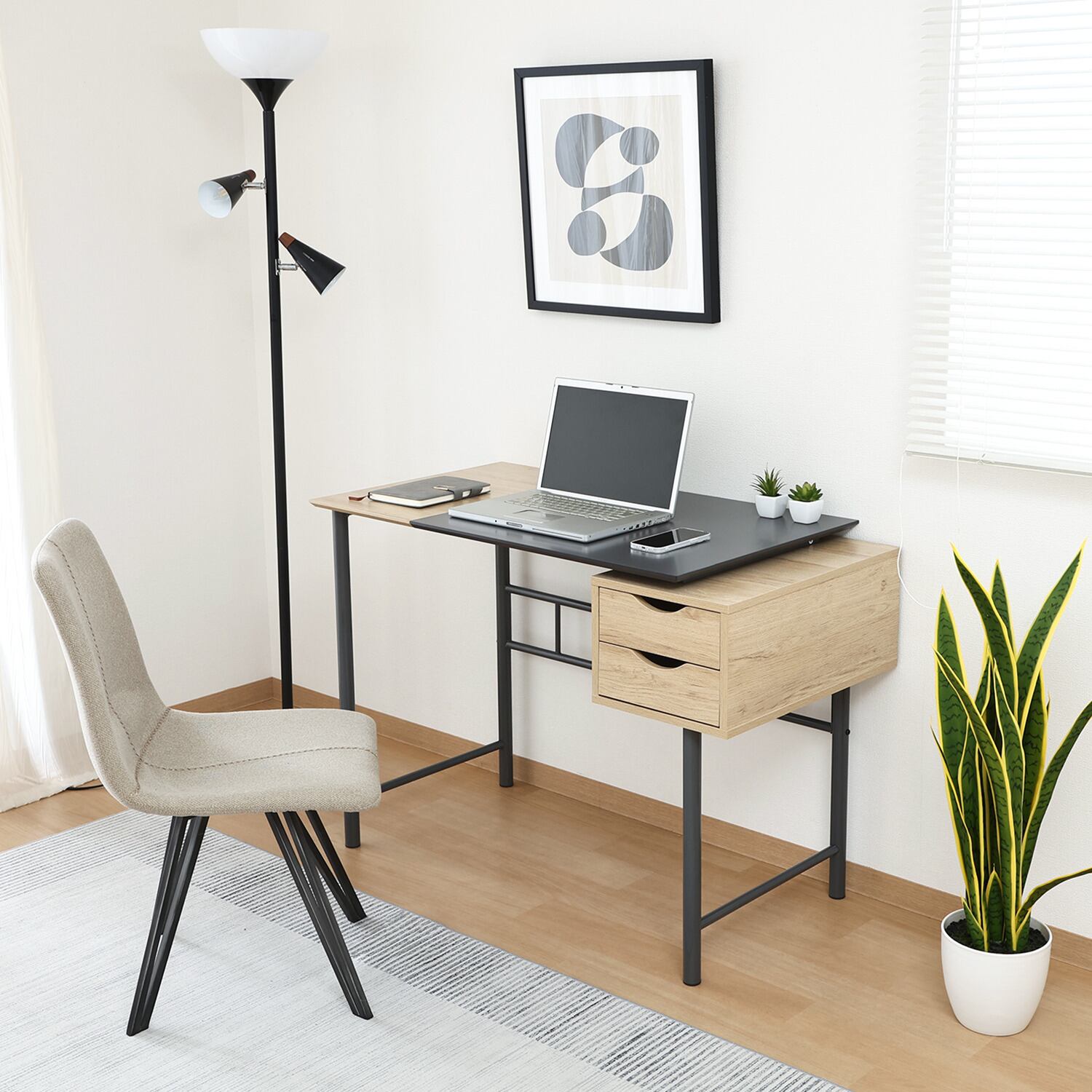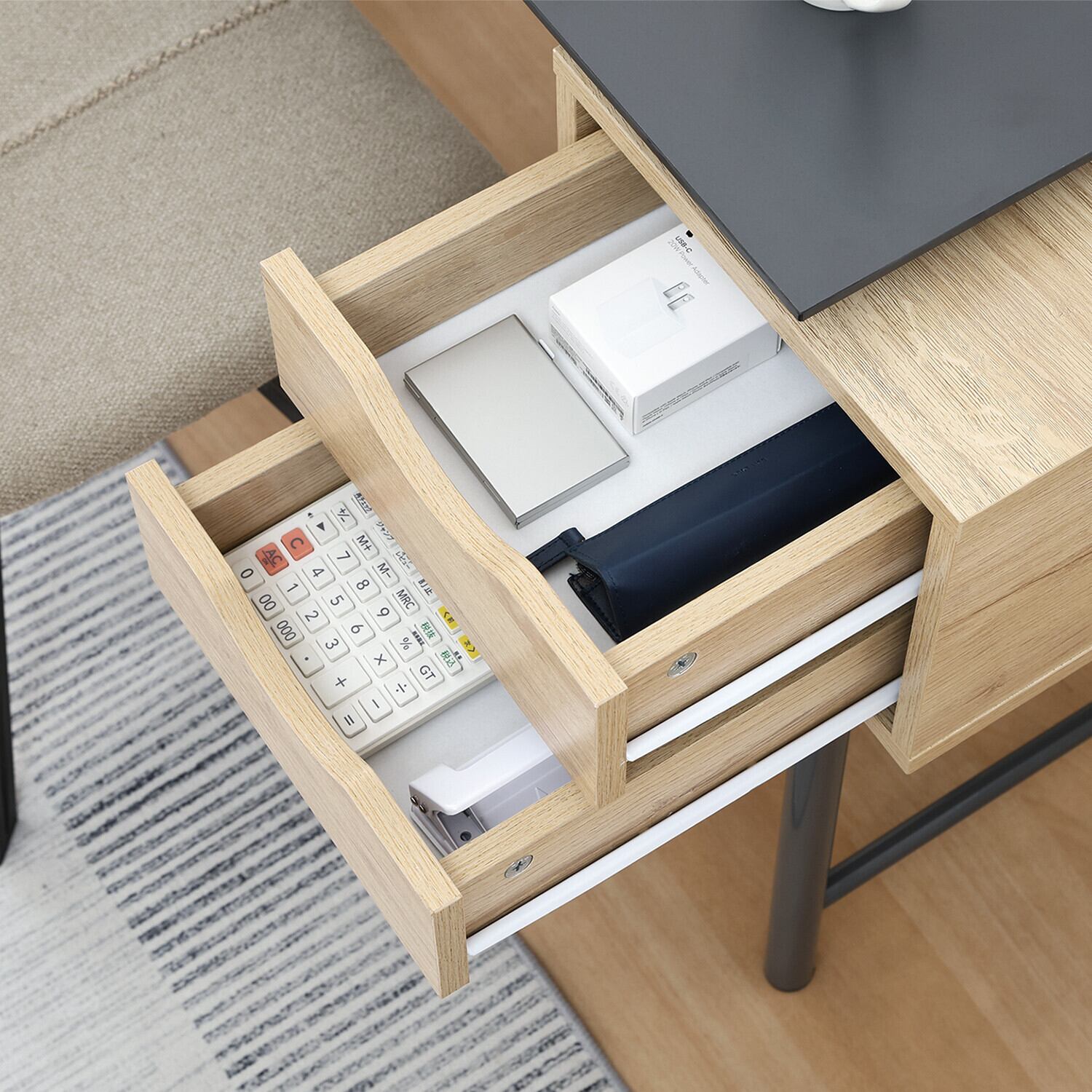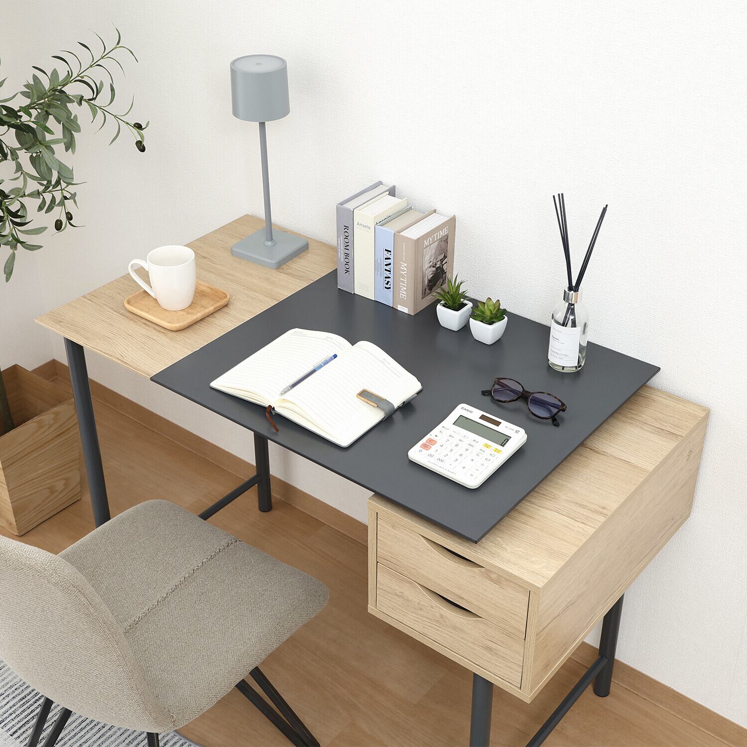 ◆演出:このシンプルデスクは、日々の作業を快適にサポートするアイテムです。必要なものを引き出しに収納し、作業スペースをスッキリと整えることで、効率的に作業を進めることができます。ぜひ、お部屋に取り入れて、シンプルながらも機能的な作業環境を楽しんでください!