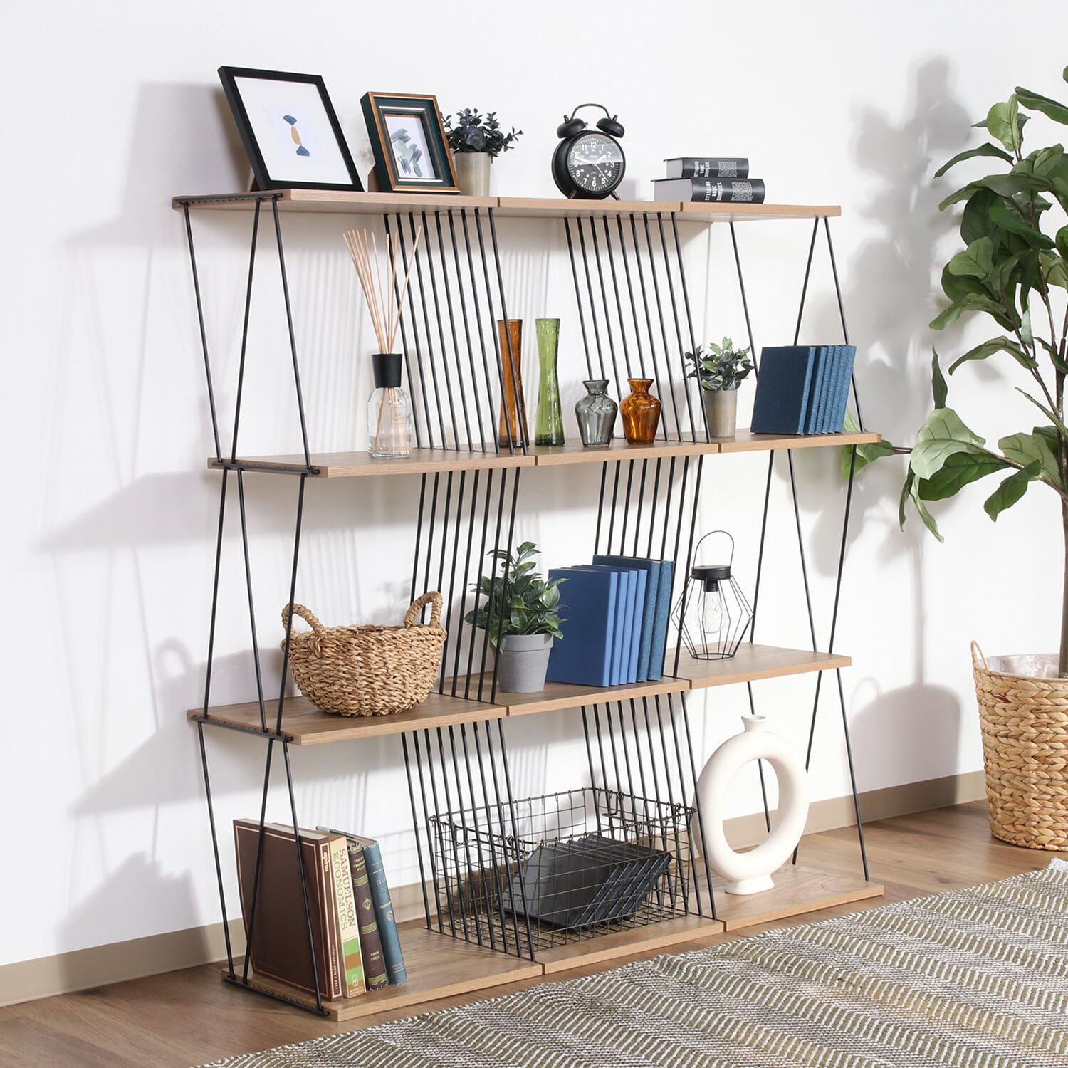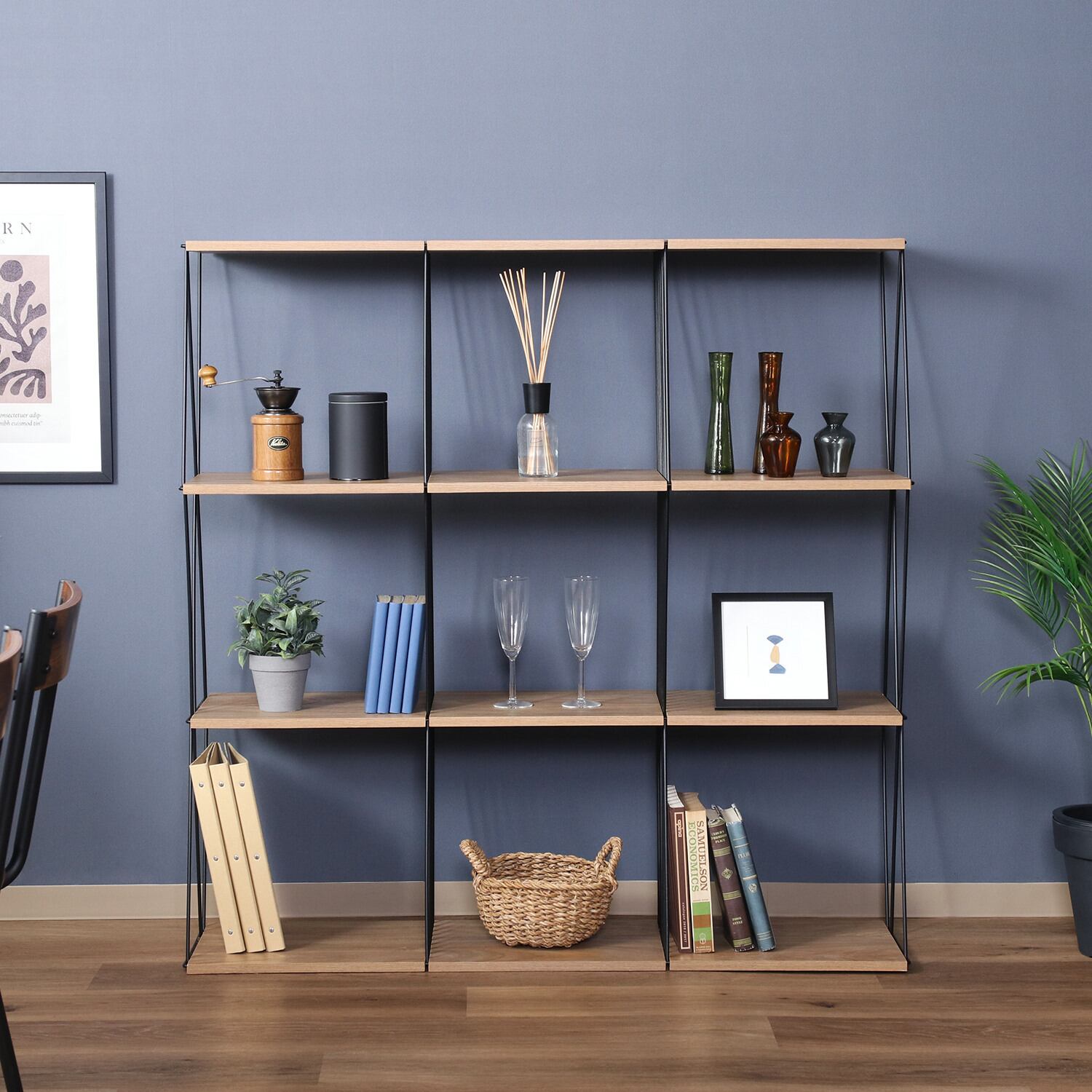 EZBOワイヤーディスプレイラックは、リビングやオフィス、店舗など、さまざまな場面で活躍します。組み立てが簡単なので、必要なときにすぐに使用開始できます。シンプルで洗練されたデザインは、どんなインテリアにも調和し、空間を広く見せる効果もあります。