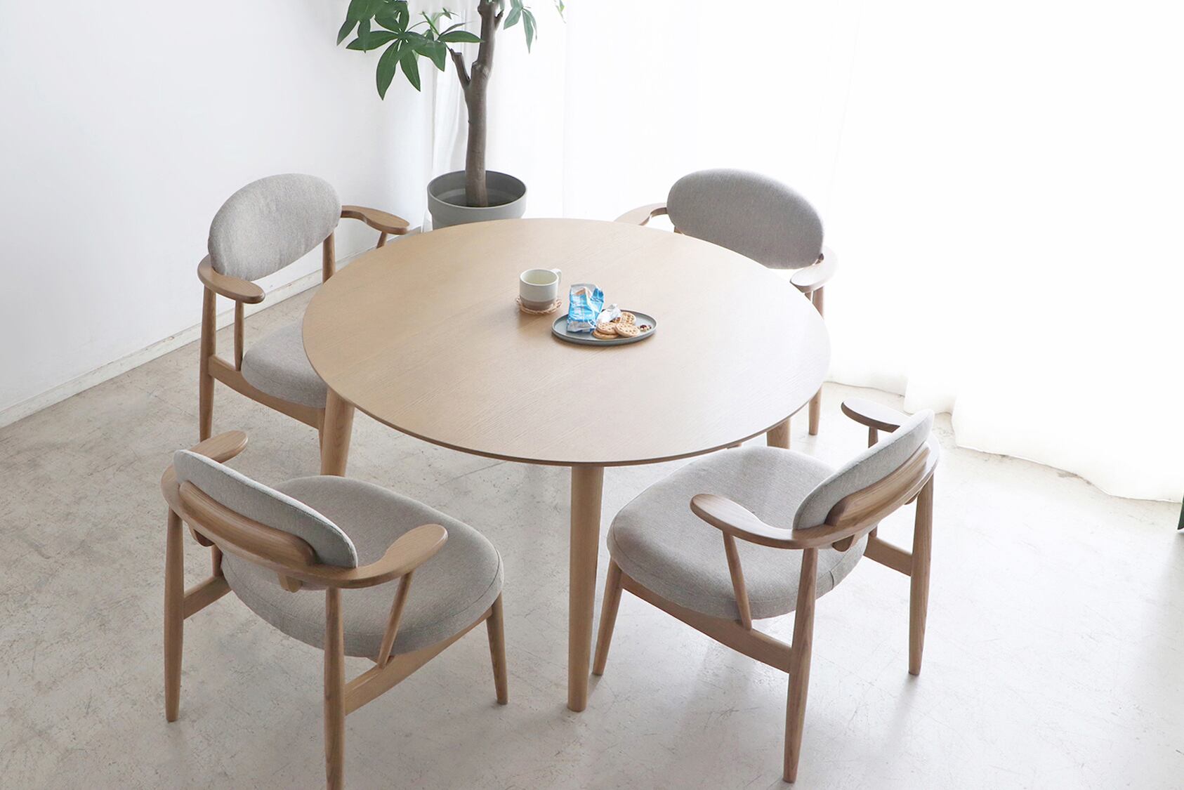 RND ダイニングテーブル120が新たにラインアップしました!この円形テーブルは、やわらかな木目が美しく、根強い人気を誇るロータイプのアイテムです。